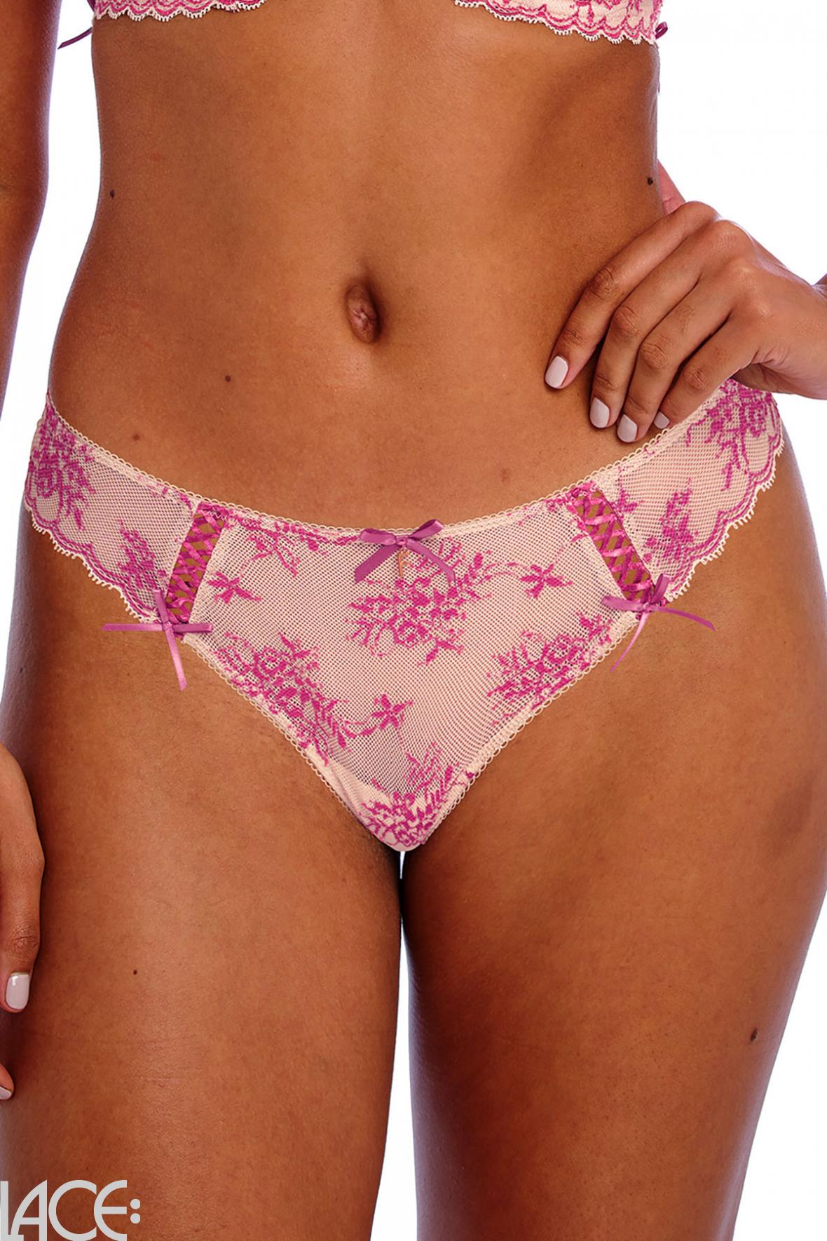 Confidence starts from the inside out - and your body confidence starts with your lingerie or swimwear. Freya Lingerie Offbeat Decadence Brazilian thong belongs to the category Knickers - Thong and is part of the collection Offbeat Decadence. The product has the article number AA402571_vintagerose=75b by Freya Lingerie, and is available in the following colours: , and is made from these materials Polyamide 80%, Elastane 10%, Polyester 10%. We despatch your order within 3 working days, so you can expect delivery within 5 working days. We accept payments from credit cards and Paypal.